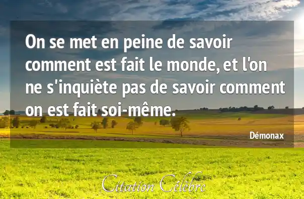 On se met en peine de savoir comment est fait le monde, et l'on ne s'inquiète pas de savoir comment on est fait soi-même.