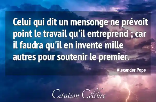 Celui qui dit un mensonge ne prévoit point le travail qu'il entreprend ; car il faudra qu'il en invente mille autres pour soutenir le premier.