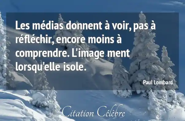Les médias donnent à voir, pas à réfléchir, encore moins à comprendre. L'image ment lorsqu'elle isole.