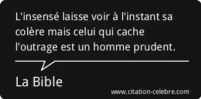 L'insensé laisse voir à l'instant sa colère mais celui qui cache l'outrage est un homme prudent.