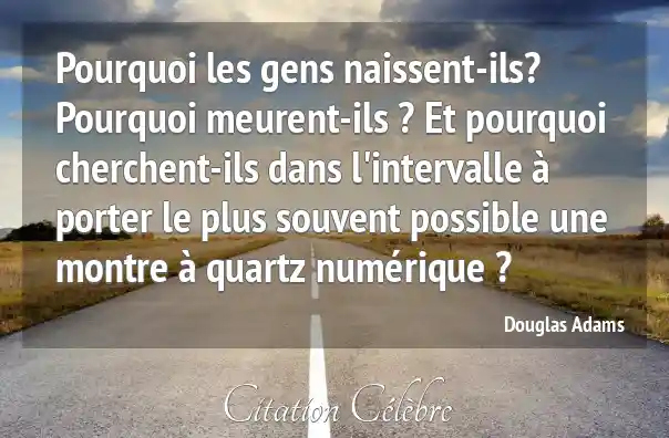Pourquoi les gens naissent-ils? Pourquoi meurent-ils ? Et pourquoi cherchent-ils dans l'intervalle à porter le plus souvent possible une montre à quartz numérique ?