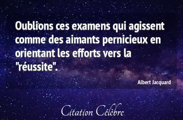 Oublions ces examens qui agissent comme des aimants pernicieux en orientant les efforts vers la "réussite".
