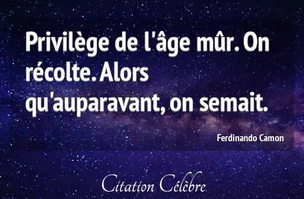 Privilège de l'âge mûr. On récolte. Alors qu'auparavant, on semait.