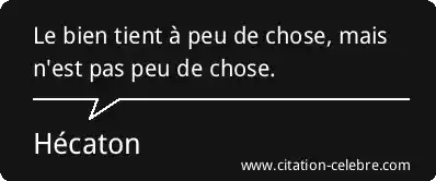 Le bien tient à peu de chose, mais n'est pas peu de chose.