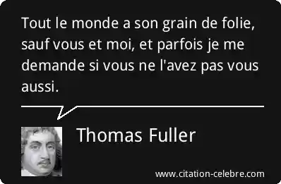 Tout le monde a son grain de folie, sauf vous et moi, et parfois je me demande si vous ne l'avez pas vous aussi.