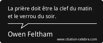 Cette célèbre formule d'Owen Feltham invite à considérer la prière comme un acte essentiel et structurant de la journée. Elle suggère que la prière devrait être la première action entreprise au réveil (la "clef du matin") pour ouvrir et dédier la journée, et la dernière action avant de dormir (le "verrou du soir") pour la conclure, la protéger et la sécuriser.