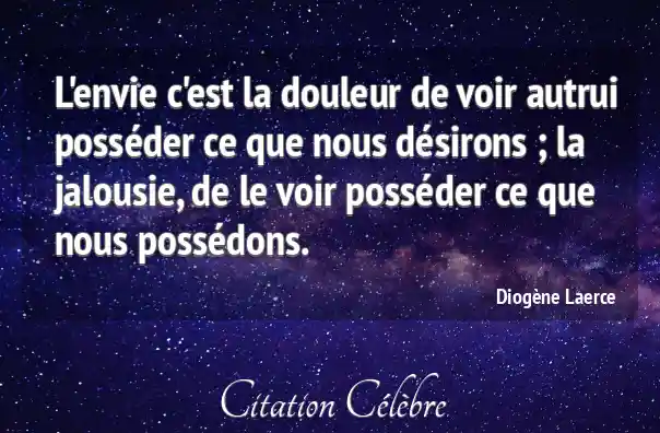 L'envie c'est la douleur de voir autrui posséder ce que nous désirons ; la jalousie, de le voir posséder ce que nous possédons.