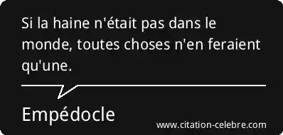 Si la haine n'était pas dans le monde, toutes choses n'en feraient qu'une.