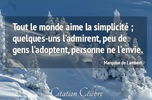 Tout le monde aime la simplicité ; quelques-uns l'admirent, peu de gens l'adoptent, personne ne l'envie.