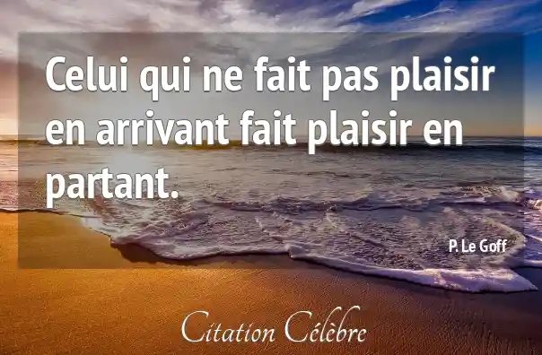 Celui qui ne fait pas plaisir en arrivant fait plaisir en partant.