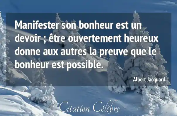 Manifester son bonheur est un devoir ; être ouvertement heureux donne aux autres la preuve que le bonheur est possible.