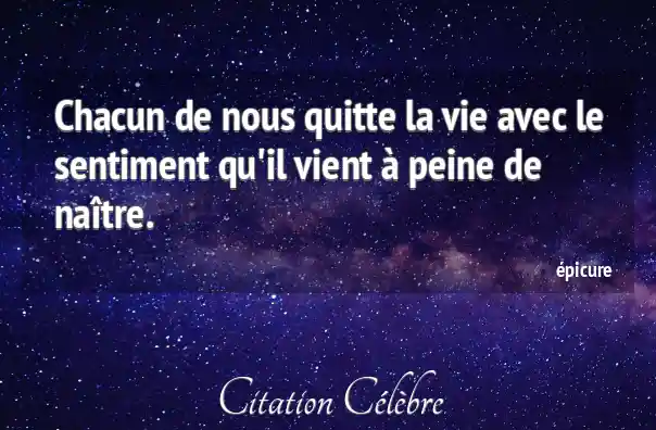 Chacun de nous quitte la vie avec le sentiment qu'il vient à peine de naître.