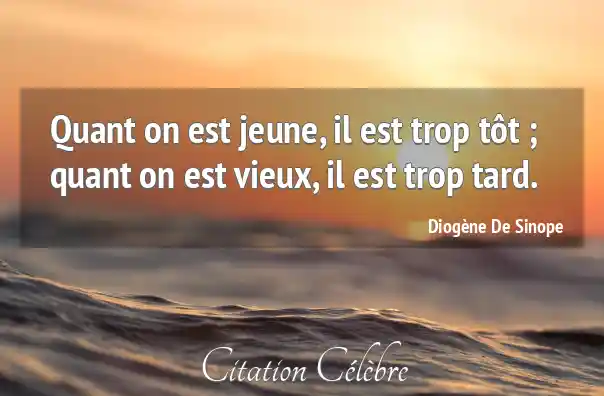 Quant on est jeune, il est trop tôt ; quant on est vieux, il est trop tard.