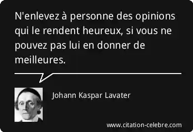 N'enlevez à personne des opinions qui le rendent heureux, si vous ne pouvez pas lui en donner de meilleures.