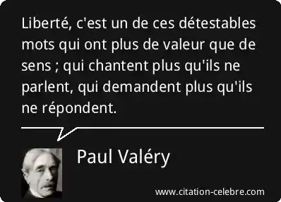 Liberté, c'est un de ces détestables mots qui ont plus de valeur que de sens ; qui chantent plus qu'ils ne parlent, qui demandent plus qu'ils ne répondent.