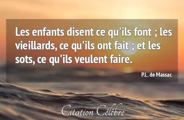 Les enfants disent ce qu'ils font ; les vieillards, ce qu'ils ont fait ; et les sots, ce qu'ils veulent faire.