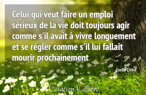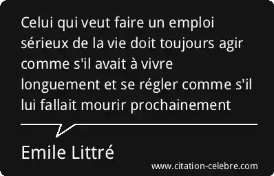 Celui qui veut faire un emploi sérieux de la vie doit toujours agir comme s'il avait à vivre longuement et se régler comme s'il lui fallait mourir prochainement