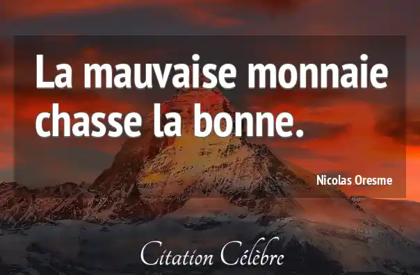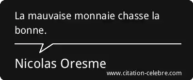 Citation Nicolas Oresme bonne : La mauvaise monnaie chasse la bonne....