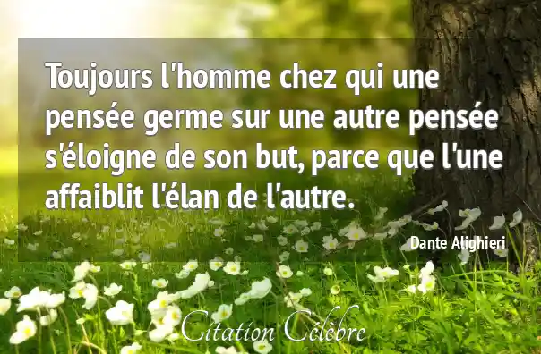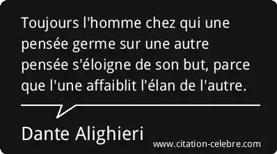 Toujours l'homme chez qui une pensée germe sur une autre pensée s'éloigne de son but, parce que l'une affaiblit l'élan de l'autre.