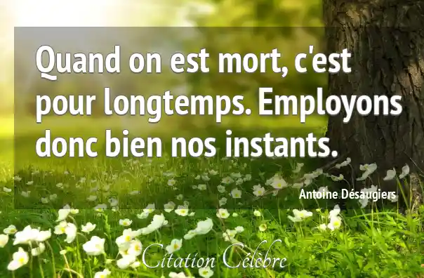 Quand on est mort, c'est pour longtemps. Employons donc bien nos instants.