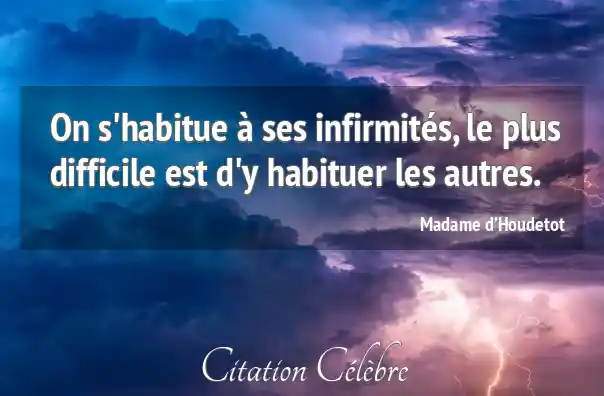 On s'habitue à ses infirmités, le plus difficile est d'y habituer les autres.
