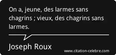 On a, jeune, des larmes sans chagrins ; vieux, des chagrins sans larmes.