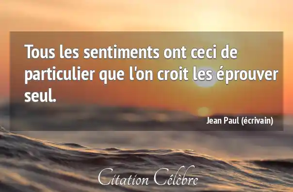 Tous les sentiments ont ceci de particulier que l'on croit les éprouver seul.