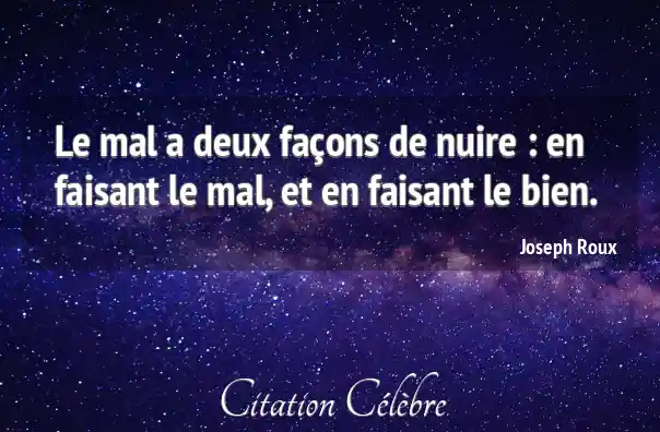 Le mal a deux façons de nuire : en faisant le mal, et en faisant le bien.
