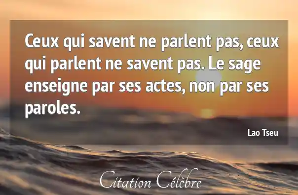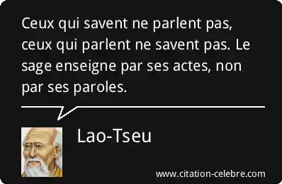 Ceux qui savent ne parlent pas, ceux qui parlent ne savent pas. Le sage enseigne par ses actes, non par ses paroles.