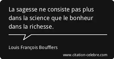 La sagesse ne consiste pas plus dans la science que le bonheur dans la richesse.