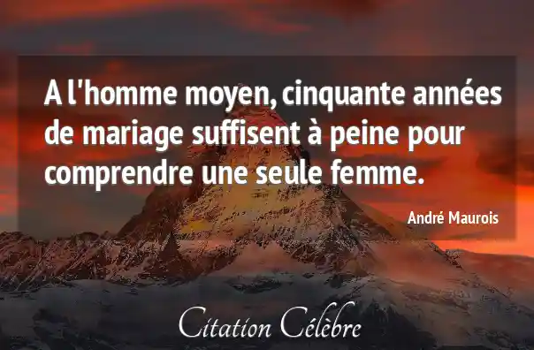 A l'homme moyen, cinquante années de mariage suffisent à peine pour comprendre une seule femme.