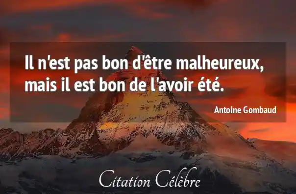Il n'est pas bon d'être malheureux, mais il est bon de l'avoir été.