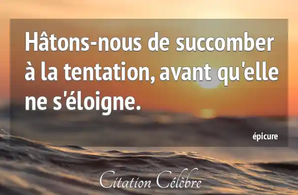 Hâtons-nous de succomber à la tentation, avant qu'elle ne s'éloigne.