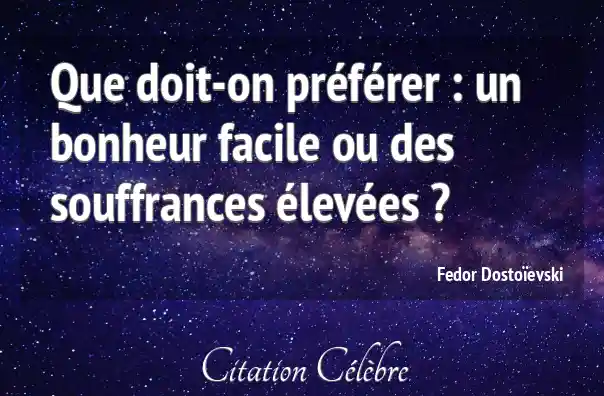 Que doit-on préférer : un bonheur facile ou des souffrances élevées ?