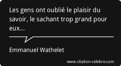 Les gens ont oublié le plaisir du savoir, le sachant trop grand pour eux...