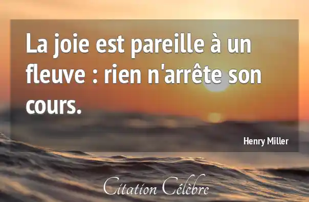 La joie est pareille à un fleuve : rien n'arrête son cours.