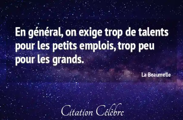 En général, on exige trop de talents pour les petits emplois, trop peu pour les grands.