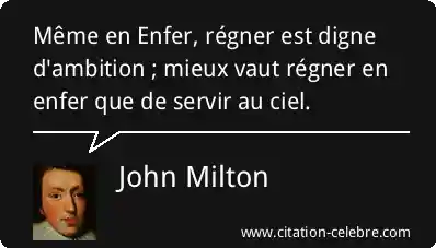 Même en Enfer, régner est digne d'ambition ; mieux vaut régner en enfer que de servir au ciel.