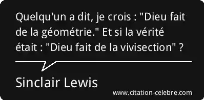 Quelqu'un a dit, je crois : "Dieu fait de la géométrie." Et si la vérité était : "Dieu fait de la vivisection" ?