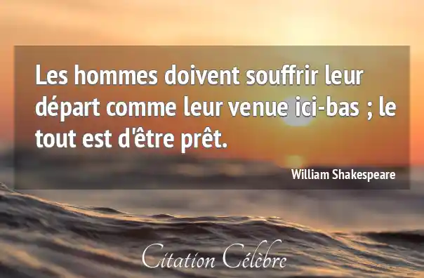 Les hommes doivent souffrir leur départ comme leur venue ici-bas ; le tout est d'être prêt.