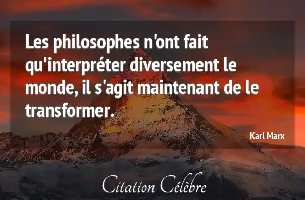 Les philosophes n'ont fait qu'interpréter diversement le monde, il s'agit maintenant de le transformer.