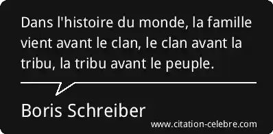 Dans l'histoire du monde, la famille vient avant le clan, le clan avant la tribu, la tribu avant le peuple.
