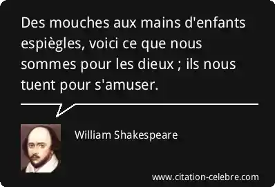Des mouches aux mains d'enfants espiègles, voici ce que nous sommes pour les dieux ; ils nous tuent pour s'amuser.