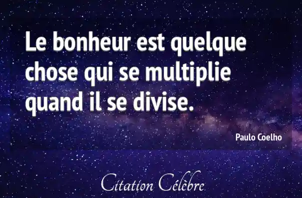 Le bonheur est quelque chose qui se multiplie quand il se divise.