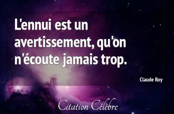 L'ennui est un avertissement, qu'on n'écoute jamais trop.