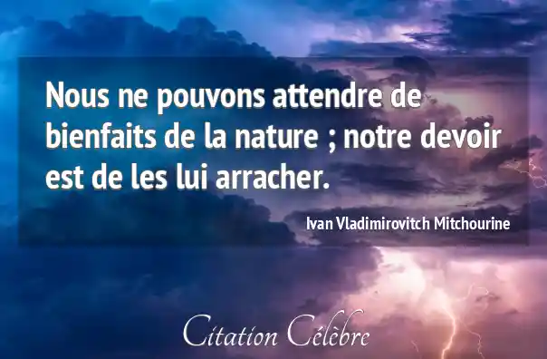 Nous ne pouvons attendre de bienfaits de la nature ; notre devoir est de les lui arracher.