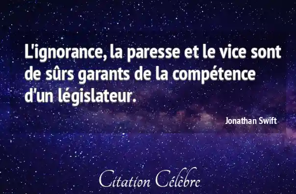 L'ignorance, la paresse et le vice sont de sûrs garants de la compétence d'un législateur.