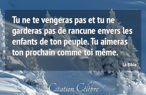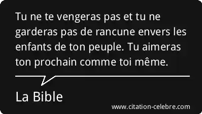 Tu ne te vengeras pas et tu ne garderas pas de rancune envers les enfants de ton peuple. Tu aimeras ton prochain comme toi même.