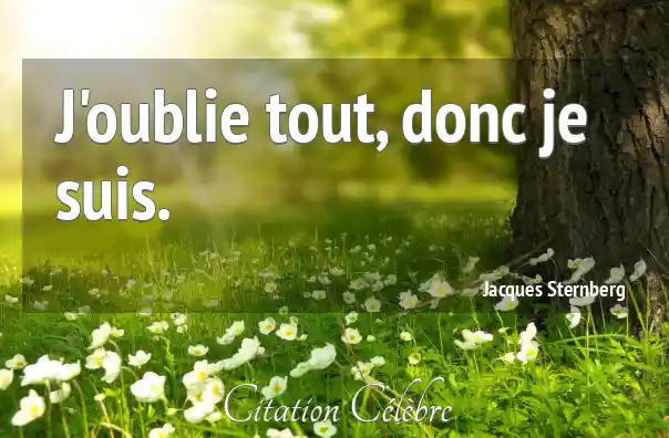 Citation Jacques Sternberg suis : J'oublie tout, donc je suis....