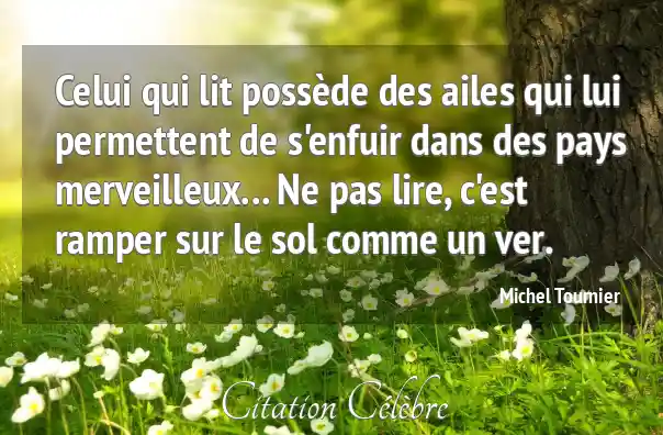 Celui qui lit possède des ailes qui lui permettent de s'enfuir dans des pays merveilleux... Ne pas lire, c'est ramper sur le sol comme un ver.